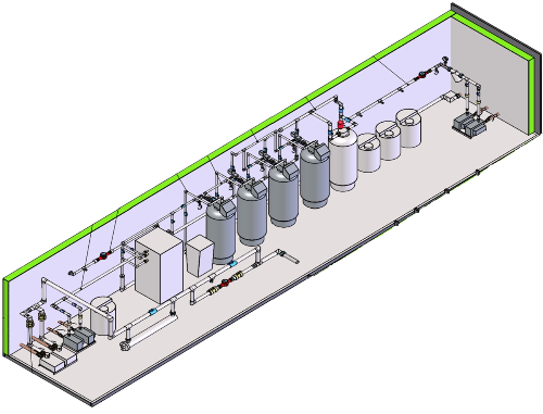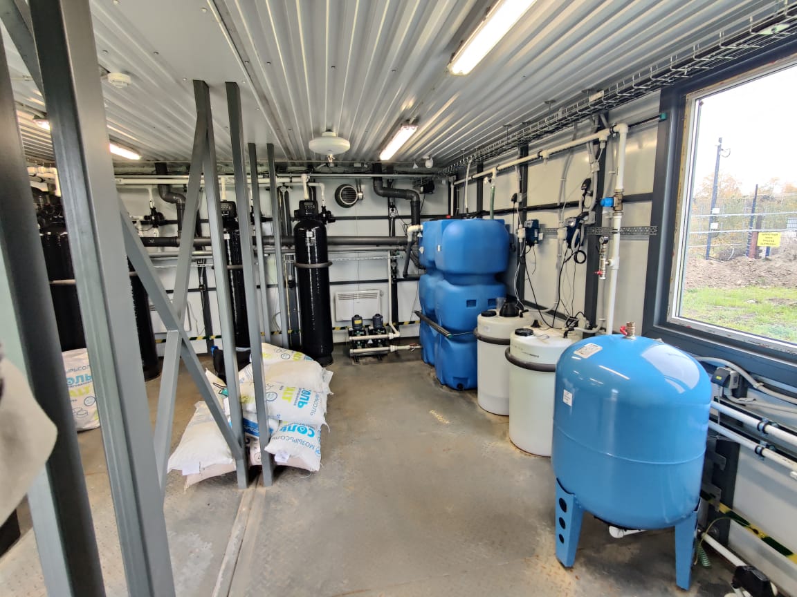 Установка водоподготовки для хозяйственно питьевых нужд представляет собой компактный модуль, состоящий из следующих блоков: осветления, обезжелезивания, деманганации и умягчения.